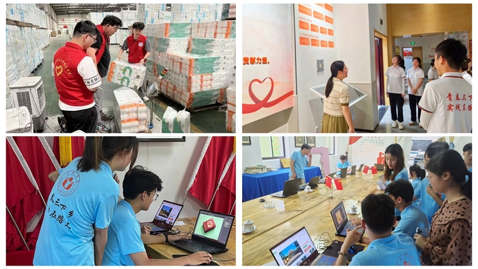 校青年志愿者聯合會邀請留學生一起走進合肥市經開區臨湖社區,圍繞思想引領、科技創新、手工實踐及文化交流開展為期兩周的志愿服務;外國語學院實踐團隊赴宿州市泗縣惠廟村開展助殘筑夢愛心慰問活動,為貧困家庭送去大米、食用油、醫用口罩、文具等物資,傳遞愛心與溫暖;教育學院團隊赴合肥市包河區濱湖和園社區進行安全主題教育,向孩子們介紹防溺水、禁毒和反詐騙等方面的知識;生物食品與環境學院團隊赴池州市石臺縣大演鄉,以現場教學和走訪宣講的形式,向當地學生宣傳弘揚“井岡山精神”;大學生紅十字會赴合肥市長豐縣杜集鎮東黃村普及結核病防治知識,幫助孩子們認識結核病的危害性,增強自我保護意識。