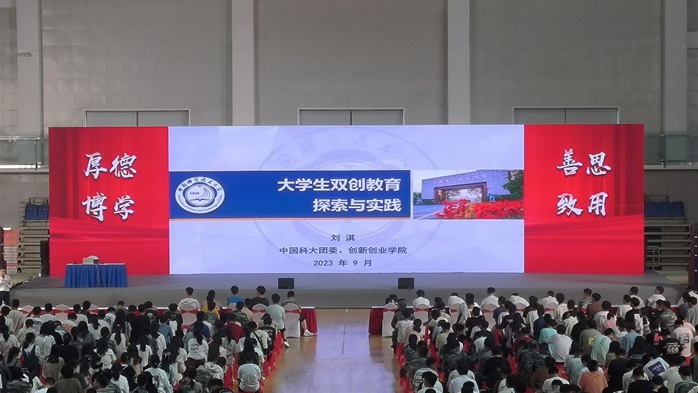 中國科學技術大學團委副書記、創新創業學院副院長劉淇為新生作《大學生雙創教育探索與實踐》專題報告,他從大學生創新創業教育的背景、重要性、相關政策以及發展現狀入手,結合中國科學技術大學針對大學生創新創業教育的探索過程與實踐案例,鼓勵新生以創新驅動自我成長。