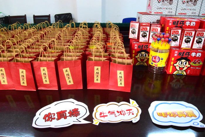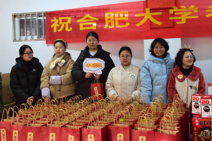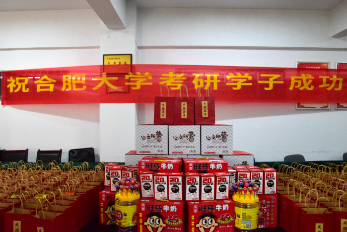 活動現(xiàn)場,“祝合肥大學考研學子成功上岸”的橫幅鼓舞人心。一個個祝福語手舉牌飽含著對考研學子的鼓勵和祝福。桌上,禮包排放整齊,各類零食飲料有序壘起,形態(tài)如山,寓意合大學子勇攀高峰,摘得理想桂冠。橙子寓意心想事“橙”;旺仔牛奶寄托著“一路旺到底”的美好祝愿;薯片寄寓學生邁向“心之所薯”……慰問過程中,物業(yè)負責人與學生們親切交流,預祝他們在考試中馬到成功,實現(xiàn)人生理想。收到大禮包后,學生們紛紛表示學校太暖心,讓自己堅定了考研的信心,將會以飽滿的狀態(tài)迎接考試。