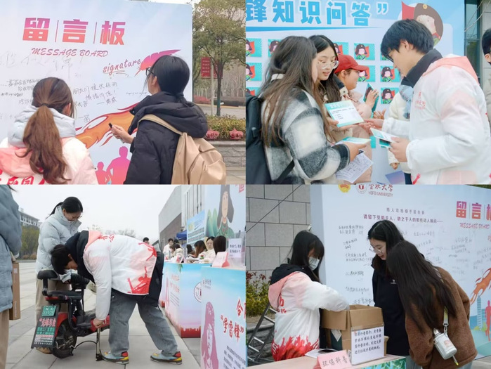 服務(wù)驛站映日輝,點(diǎn)亮春日校園美。校青年志愿者聯(lián)合會(huì)設(shè)置“追尋雷鋒足跡”服務(wù)驛站,志愿者們?yōu)閹熒峁┭坨R清洗、電腦維修、電瓶車打氣、手機(jī)貼膜、證件照拍攝、醫(yī)療護(hù)理、圖書捐贈(zèng)、科普環(huán)保等多項(xiàng)公益服務(wù)。為吸引更多青年學(xué)生參與活動(dòng),青志聯(lián)組織開展“雷鋒知識(shí)問答”盲盒競猜和“贈(zèng)人玫瑰,手留余香”留言活動(dòng)。活動(dòng)期間,驛站累計(jì)服務(wù)近千余人。