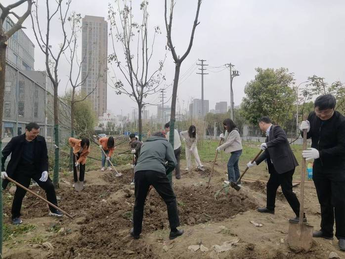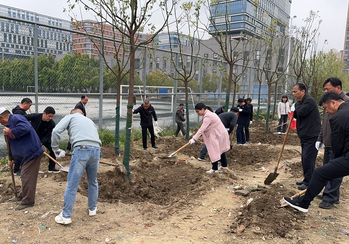 活動現場,大家有序組隊、分工協作、干勁十足,挖坑、扶苗、培土……每個環節都做得認真細致、有條不紊,經過一個多小時的努力,一棵棵樹苗穩穩扎下了根,為校園再添一抹新綠。
