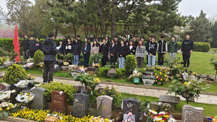 緬懷英雄先烈,傳承奉獻(xiàn)精神。清明節(jié)到來(lái)之際,校團(tuán)委、學(xué)生處帶領(lǐng)青馬班學(xué)員前往大蜀山文化陵園深切悼念我校優(yōu)秀扶貧干部朱世群同志。在朱世群同志的墓碑前,青馬班學(xué)員被朱老師的先進(jìn)事跡深深感動(dòng),學(xué)員孫靜濤說(shuō):“朱老師是我們身邊的英雄,是我們學(xué)習(xí)的榜樣,他用生命書(shū)寫(xiě)忠誠(chéng)、用奉獻(xiàn)詮釋追求、用行動(dòng)踐行誓言,詮釋了新時(shí)代共產(chǎn)黨員的初心和使命,他的精神將永遠(yuǎn)激勵(lì)著我們前行。”師生集體鞠躬默哀,依次敬獻(xiàn)鮮花,寄托追憶與不舍。