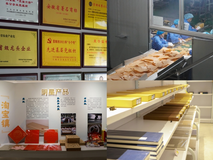 團(tuán)隊(duì)成員們走訪了云嶺鍋巴、李園村、宣紙產(chǎn)業(yè)園等地,它們以獨(dú)特的方式,走出了一條條“致富路”。云嶺鍋巴改良加工方式,為滿足多樣化的市場(chǎng)需求而制作多種口味的鍋巴。李園村把握時(shí)代機(jī)遇,利用互聯(lián)網(wǎng)將宣紙等產(chǎn)品銷往全國(guó)各地。在宣紙產(chǎn)業(yè)園內(nèi),團(tuán)隊(duì)成員們近距離觀看了宣紙、宣筆、徽墨等制作過程。“傳統(tǒng)產(chǎn)業(yè)與現(xiàn)代科技相融合”已經(jīng)成為當(dāng)?shù)仄髽I(yè)的創(chuàng)業(yè)秘訣。
