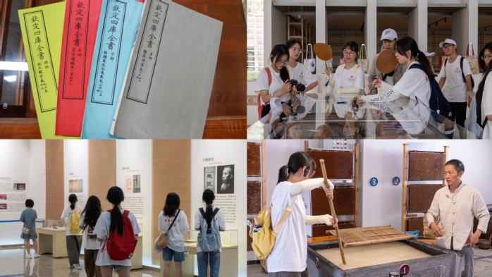 了解完宣紙的制作,團(tuán)隊(duì)來到了國(guó)內(nèi)首家線裝文化主題園區(qū)——三希堂,代表四季顏色的《四庫全書》線狀復(fù)刻版蘊(yùn)含深刻文化內(nèi)涵。在這里,成員領(lǐng)略了線裝書的獨(dú)特魅力,親手體驗(yàn)了雕版印刷和線裝書裝訂的精湛工藝。