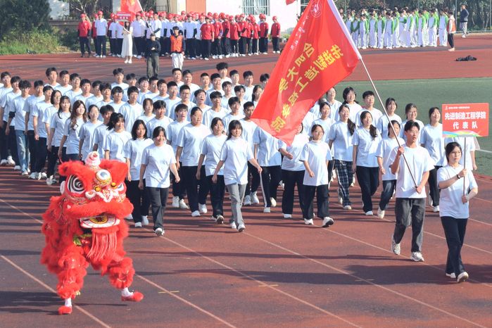 伴隨著雄渾激昂的《運動員進行曲》,國旗隊方陣高擎國旗率先入場,各二級學院、國際學生、研究生代表隊緊隨其后,邁著矯健的步伐依次走過主席臺前方。“青春激昂,氣質恢宏,先進領航”“厚德博學,揚我合大奮進風;善思致用,做我材化拼搏人”……口號聲此起彼伏,擲地有聲。整齊劃一的步伐、迎風飄揚的旗幟,展現著全校運動健兒們意氣風發、拼搏進取的精神風貌。