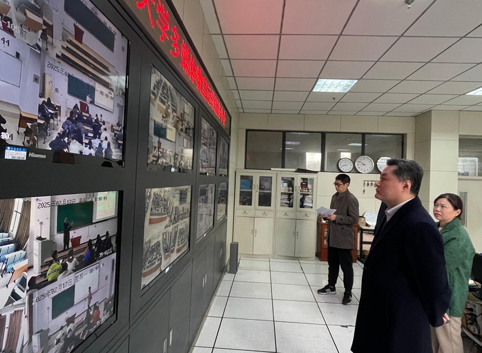 檢查組深入課堂了解教師教學安排和學生學習狀態(tài),詳細檢查多媒體維保中心的運作情況,并實時觀看了全校各班級的授課情況。王曉峰表示,要全力做好教學保障工作,為教學運行創(chuàng)造良好環(huán)境;要進一步壓實主體責任,加強課堂教學管理,全面提升教學質(zhì)量。