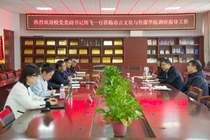 3月13日上午,黨委副書記周飛赴語言文化與傳媒學院走訪調研,與學院領導班子成員和教師代表座談交流,深入了解學院發展情況,指導學院高質量發展。
