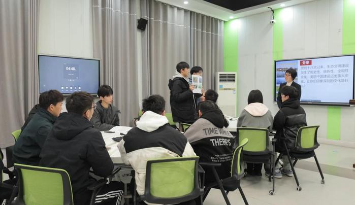為了把艱深的理論講徹底、講生動(dòng),進(jìn)一步發(fā)揮黨的創(chuàng)新理論固本培元、凝心鑄魂的作用,胡彩林深入系統(tǒng)地進(jìn)行理論研習(xí)、學(xué)情分析、策略設(shè)計(jì)、實(shí)施考評(píng)、反思整改,努力增強(qiáng)思政課的針對(duì)性和吸引力。課前五分鐘,胡彩林總會(huì)提前到達(dá)教室,完成師生之間的互動(dòng)“小游戲”。學(xué)生圍繞國內(nèi)外時(shí)事熱點(diǎn)進(jìn)行演講,再由老師點(diǎn)評(píng),當(dāng)學(xué)生的觀點(diǎn)比較片面時(shí),她會(huì)結(jié)合學(xué)生的理解進(jìn)行有理有據(jù)的引導(dǎo)。師生協(xié)同打造了習(xí)言習(xí)語分享、時(shí)事新聞短評(píng)、大學(xué)生講思政課、主播說聯(lián)播、今天我來說等一批充滿趣味的研討教學(xué)品牌。