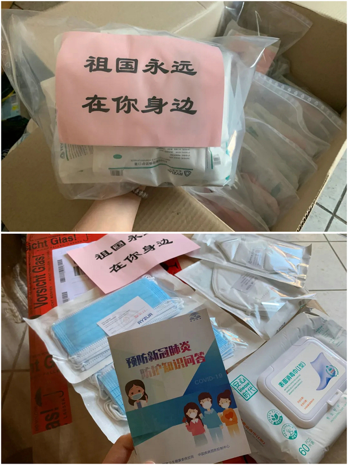 In jedem Anti-Coronas-Paket sind zwei Mundschutzmasken N95, zwanzig chirurgische Schutzmasken, Desinfektionstücher und eine Broschüre zur Aufkl?rung hinsichtlich des Grundwissen über Corona enthalten. Der Wert des Pakets l?sst sich gerade in diesem Moment, wo Deutschland stark unter dem Mangel an medizinischen Gütern und Materialien gegen Corona leidet, nicht einfach sch?tzen. Studierende posteten online und im Freundeskreis Fotos zum Ausdruck ihrer Dankbarkeit an China, des chinesischen Konsulat und Unternehmen in Deutschland sowie Mitarbeiter der Studentenvereinigungen für ihre Arbeit. Sie wünschen sich Wohlstand und Prosperit?t für China und baldige Genesung von dieser Krise.