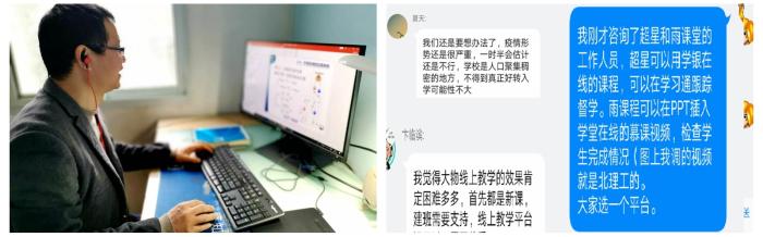 增添暖色。第一節課前,我對同學們說:“作為一位普通的高校老師,無法深入疫情災區救人,堅守自己的工作崗位就是最大的貢獻。而對于同學們來說,只要能守住一張安靜的書桌,好好地學習知識,就是對國家最大的貢獻。”同時,叮囑同學們保護好自己,積極配合社區的防疫工作。得知有些同事對信息化教學工具不熟悉時,我主動將教學軟件使用經驗和技巧分享給同事們。每次上完課,主動地與同事們溝通,分享課堂上的經驗。
