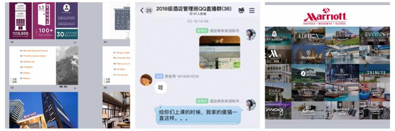 一、備課環節。1、PPT課件的升級優化。采用QQ網絡直播,通過分享屏幕的方式,結合語音教學來進行。將PPT課件進行優化,采用較為豐富的色彩搭配,并添加海量的高像素圖片,提升課件的美觀度和清晰度,讓學生產生耳目一新的感覺。課程內容增加疫情時期的相關行業信息。2、吸收更新信息,在常規的教學內容之外,插入最新的行業信息和數據,比如Shangri-la酒店集團在疫情期間,在英文官網上做出了何種相關疫情的工作及服務,拓展學生視野,將知識融會貫通。