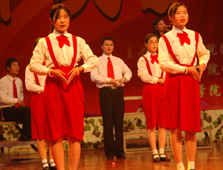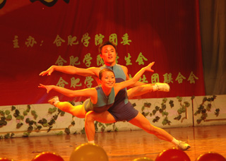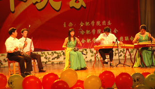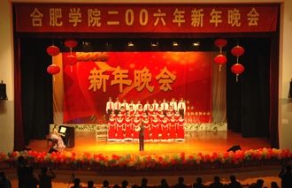 合肥學院2006年新年文藝晚會12月16日晚在院南校區禮堂成功上演,師生們用自己的歌聲、笑聲和掌聲喜迎新年的到來。院領導趙良慶、蔡敬民、丁明,各系部負責人以及近1800名師生觀看了演出。
