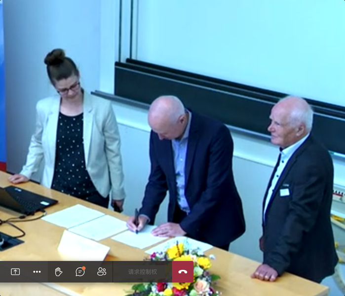 Am 10. Juni veranstalteten die Universit?t Hefei und das Deutsche Hochschul-Konsortium für Internationale Kooperationen (DHIK) eine Online-Sitzung. Die Sitzung wurde von Hans Wilhelm Orth, Leiter des DHIK China Affairs Department und Vizepr?sident der Fachhochschule Lübeck, moderiert. Wu Chunmei, Pr?sidentin der Universit?t Hefei, und Dieter Leonhard, Vorsitzender des DHIK, unterzeichneten jeweils stellvertretend für beide Parteien das Kooperationsabkommen zwischen der Universit?t Hefei und dem Deutschen Hochschulverband für Internationale Zusammenarbeit.