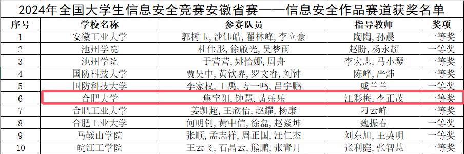 10月28日,2024年全國大學(xué)生信息安全安徽省省賽落下帷幕,我校人工智能與大數(shù)據(jù)學(xué)院學(xué)子們再創(chuàng)佳績。由22網(wǎng)絡(luò)工程1班焦宇陽、23計算機(jī)科學(xué)與技術(shù)2班鐘慧、23計算機(jī)科學(xué)與技術(shù)2班黃樂樂組成的HFUU_Seclab01團(tuán)隊(duì),在汪彩梅和李正茂老師的悉心指導(dǎo)下,憑借卓越的表現(xiàn)和創(chuàng)新能力,榮獲安徽省省賽一等獎的優(yōu)異成績。此外,我校信息安全團(tuán)隊(duì)還于網(wǎng)絡(luò)攻防賽道榮獲省級三等獎。