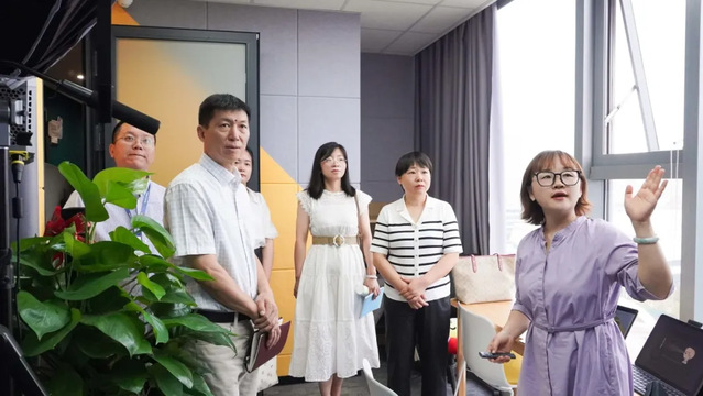 在新東方人力資源部佘嘉濤老師的引導下,合肥大學人工智能與大數據學院的老師們參觀了新東方安徽總部大廈,并詳細了解了新東方的學習機業務和文旅業務。通過宣傳片的播放,與會人員對新東方集團的業務概況有了更加深入的了解。