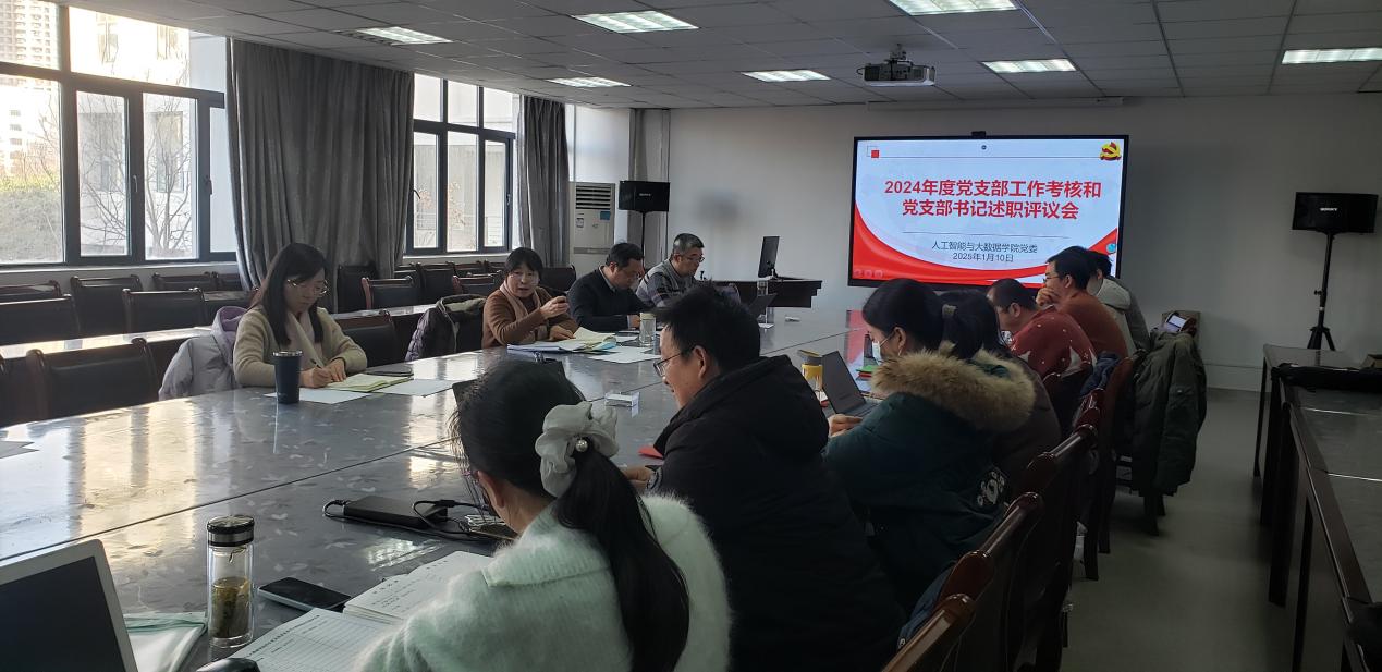 2025年1月10日,為深入貫徹落實習近平新時代中國特色社會主義思想和黨的二十大精神,全面總結2024年學院基層黨建工作,人工智能與大數據學院黨委在36棟3樓會議室召開2024年度黨支部書記抓基層黨建述職評議會議。本次會議由院黨委書記牛欣主持,院黨委委員、組織員和各黨支部書記共同參會。