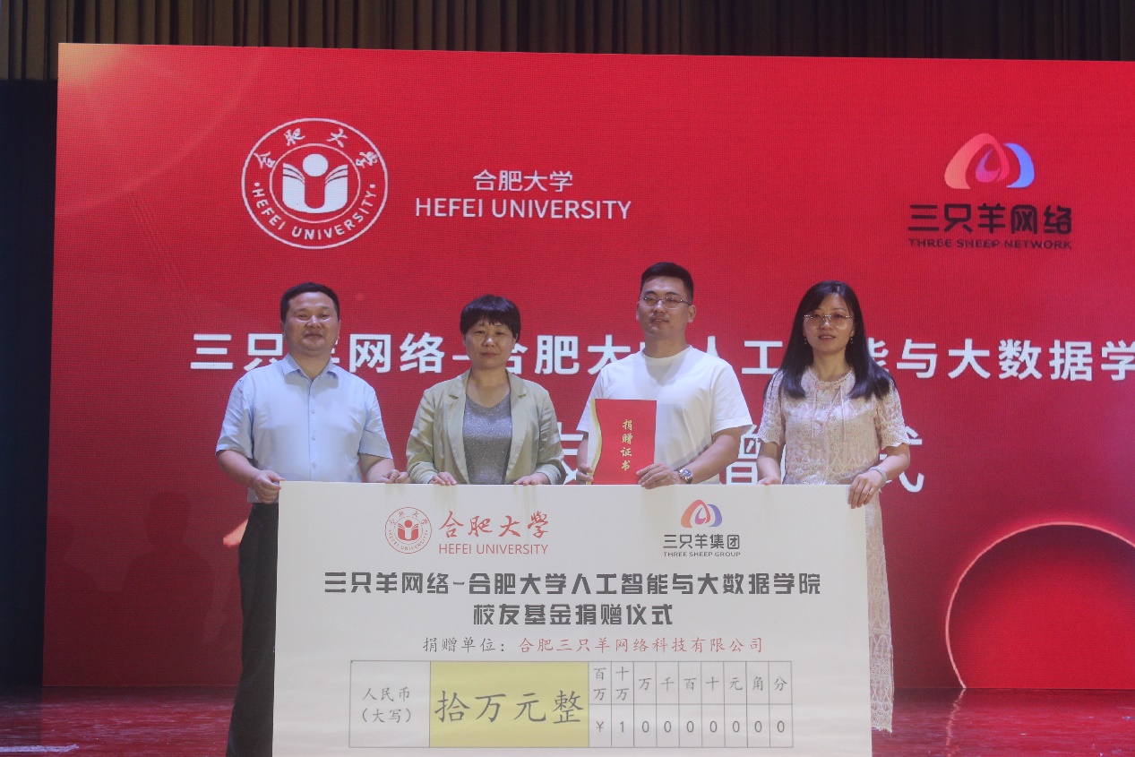 在“韶華”篇章中,畢業生們將他們的青春風采和成長歷程在豐富多彩的文藝節目中充分展示出來。校友是學校最寶貴的資源之一,晚會中有一項特別的環節——捐贈儀式,三只羊網絡科技公司捐贈十萬元,設立“人大學院發展基金”,用于支持學院多元化發展建設需求,豐富校園文化活動。集團副總裁、07級信息與計算科學專業校友張鑫代表校友企業上臺致辭,并接收捐贈證書。