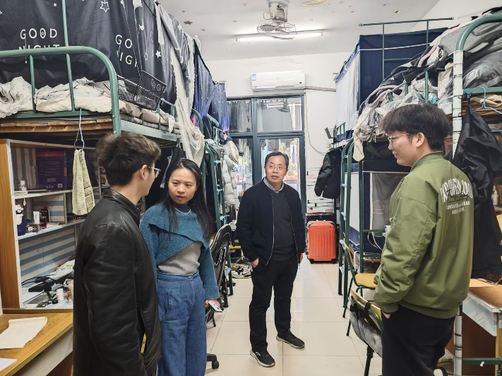 在檢查過程中,領(lǐng)導(dǎo)們還親切地與同學(xué)們交流,詢問大家的學(xué)習(xí)、生活情況,傾聽同學(xué)們的心聲。對于同學(xué)們反映的問題,如宿舍設(shè)施老化、作息協(xié)調(diào)困難等,領(lǐng)導(dǎo)們都一一記錄,并表示會盡快安排相關(guān)部門處理解決。