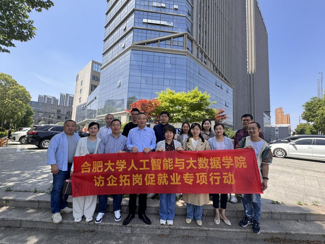 2025年4月23日,合肥大學人工智能與大數據學院黨委書記牛欣帶隊,學院黨委副書記姚蓓蓓,副院長陳圣兵及教師代表一行赴安徽銀通物聯有限公司,開展“訪企拓崗促就業”專項行動,并走訪慰問在企工作的3名校友。此次活動旨在深化校企合作,拓展畢業生就業渠道,同時加強學院與校友的聯動,共謀產學研融合發展新路徑。