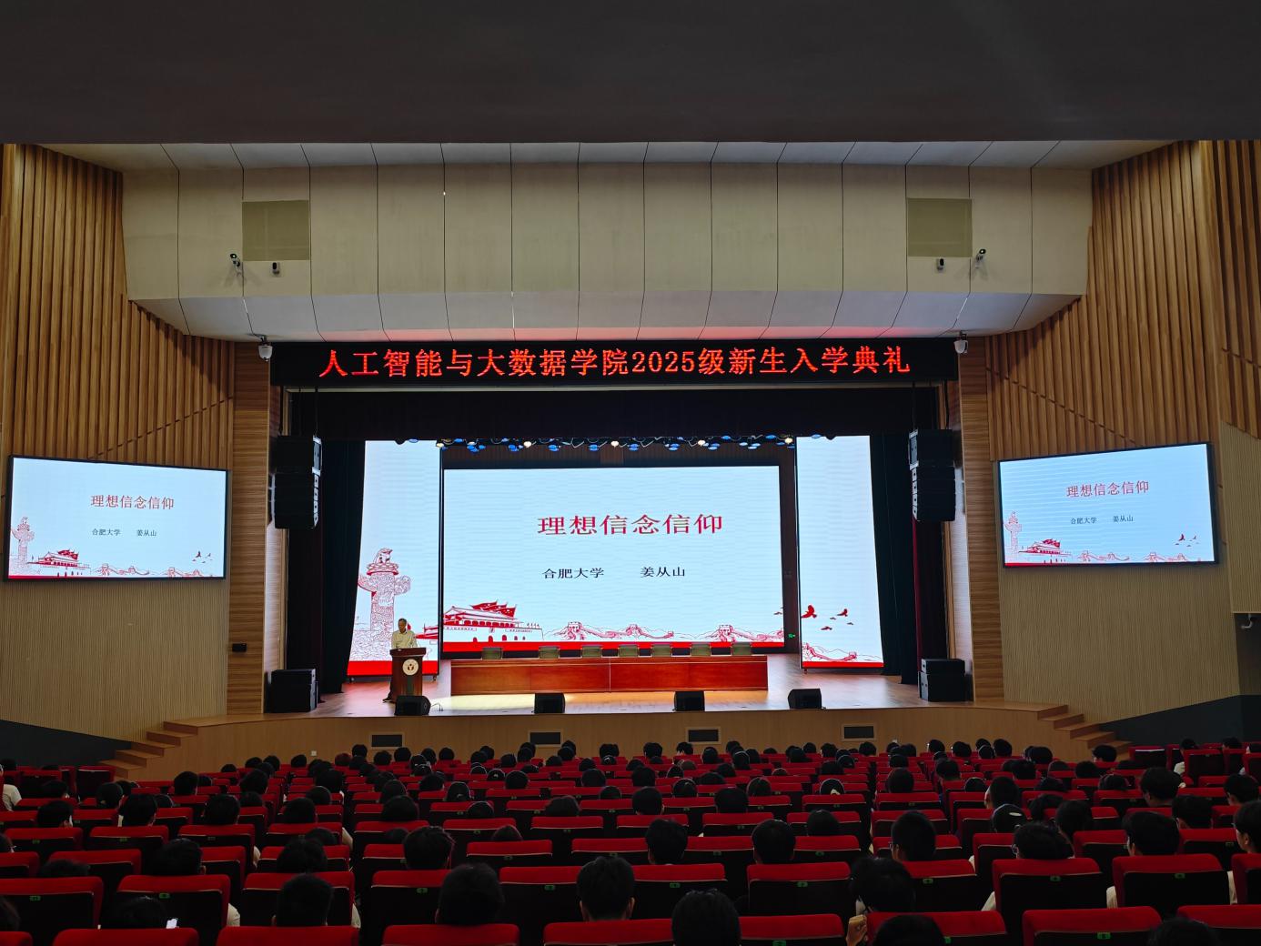 9月11日,合肥大學人工智能與大數據學院在大學生活動中心舉辦“理想信念與信仰”主題專題講座,為2025級新生開展入學教育“愛國愛校教育”專題學習。本次講座特別邀請合肥大學“五老”專家團成員、原馬克思主義學院副教授姜從山擔任主講人,為新生們帶來了一堂兼具思想深度與指導意義的入學教育課。