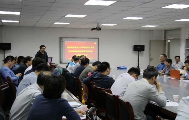 圖11 我校人工智能與大數據學院承辦2019屆全國大學生數學建模競賽安徽賽區復賽 | 圖12 徐立祥老師為同學們講解美賽事宜 |