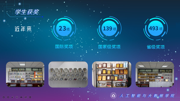 人工智能與大數據學院緊緊圍繞學校人才培養中心工作,2012年以來積極開展以學生科技創新創業為主的第二課堂工作,以學生“能力水平、專業類別和興趣愛好”為根本出發點,目前成立了: RoboCup機器人足球、數學建模、AR/VR團隊、物聯網創新設計、移動應用開發、ACM-ICPC算法設計、仿人機器人、水下機器人、區塊鏈、網絡與信息安全等16支團隊,并且專門建設了機器視覺應用、數學建模與仿真等6個學生創新實驗室、移動APP開發、多智能體系統、數據分析與仿真等8個大學生創客中心;為各團隊提供良好的環境和資源。通過這些工作的開展,人工智能與大數據學院大學生的創新創業能力逐步增強,目前有200余人常駐創新創業實驗室。近五年在師生共同努力下,在各類競賽中共獲獎800項,其中國際級21項,國家級獎項160余項、省級獎項600余項。RoboCup機器人2D仿真足球隊連續5次進入世界杯前8強,先后獲得葡萄牙公開賽冠軍、世界杯季軍等國際獎項,是世界杯、中國機器人足球賽公認強隊;此外獲得中國機器人大賽暨RoboCup公開賽曾獲得國家特等獎1項、美國大學生數學建模競賽獲得國際二等獎6項,全國大學生數學建模競賽獲得國家二等獎1項,CCPC中國大學生程序設計競賽總決賽銀牌,Robocup機器人世界杯中國賽獲得亞軍,“哈工大杯”第十六屆全國機器人錦標賽暨“博思威龍杯”第五屆國際仿人機器人奧林匹克大賽獲得國家一等獎2項,“藍橋杯”全國軟件和信息技術專業人才大賽個人賽曾獲得國家一等獎2項,“田家炳杯”第六屆全國師范院校師范生教學技能競賽國家二等獎、第二屆全國師范生微課設計大賽國家特等獎等。獲批大學生創新創業訓練計劃項目國家級86項,省級168項,獲批大學生創客實驗室項目8項,2名優秀學生獲得安徽省“創新之星”榮譽稱號。