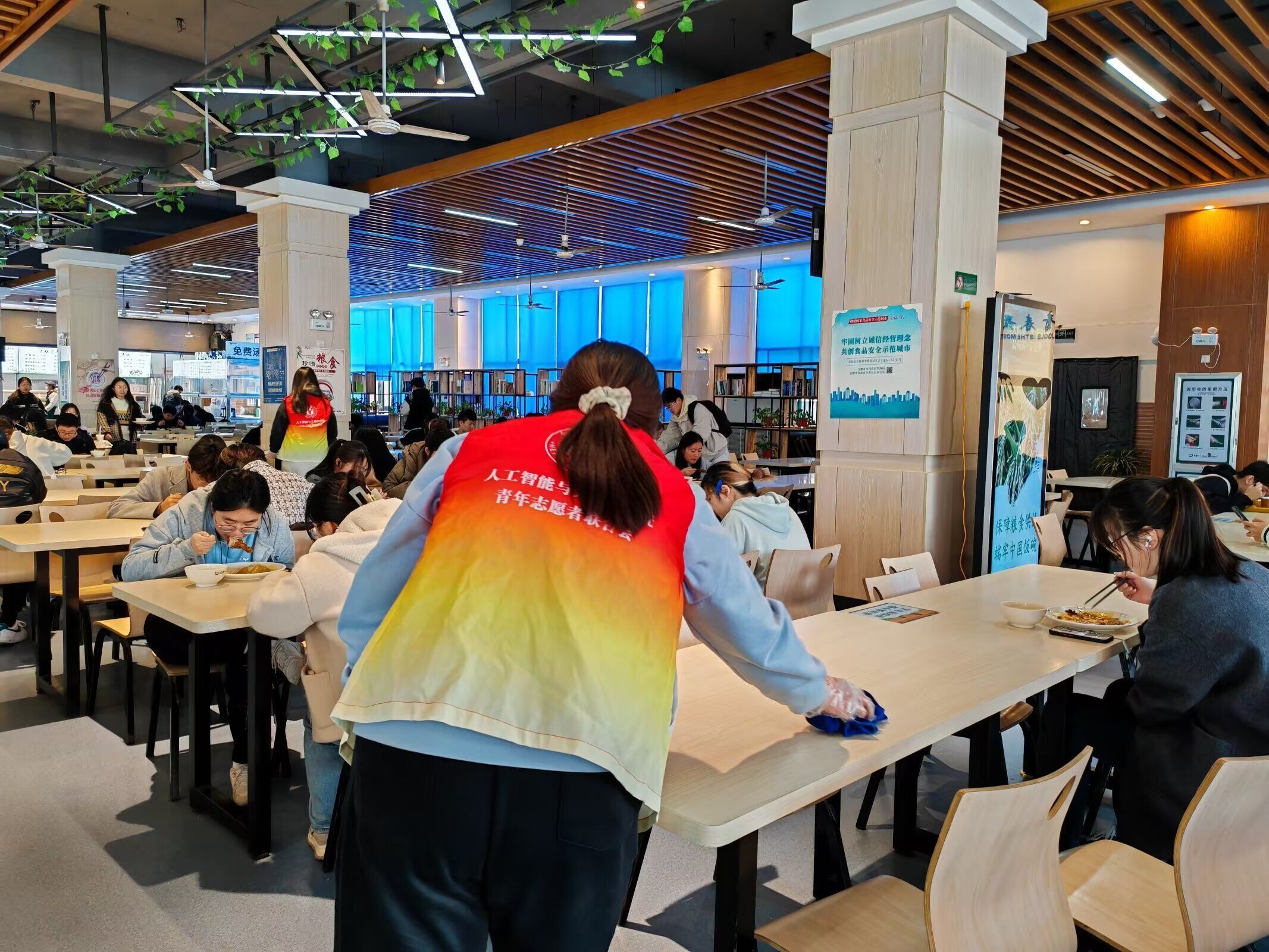 活動期間,志愿者們早早來到食堂,分工明確。有的負責(zé)收拾桌面,有的負責(zé)整理餐盤,有的負責(zé)打掃地面衛(wèi)生。他們熱情洋溢,面帶微笑,用真誠和熱心為每一位走進食堂的師生提供幫助。他們的付出得到了大家的一致好評,也讓整個食堂氛圍更加溫馨和諧。