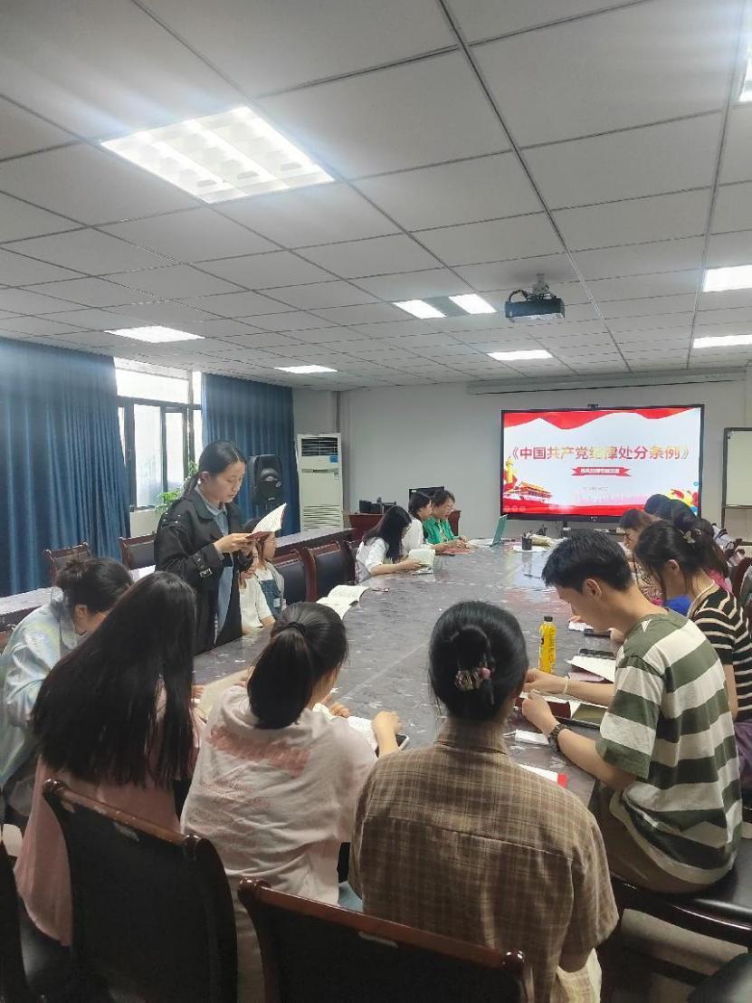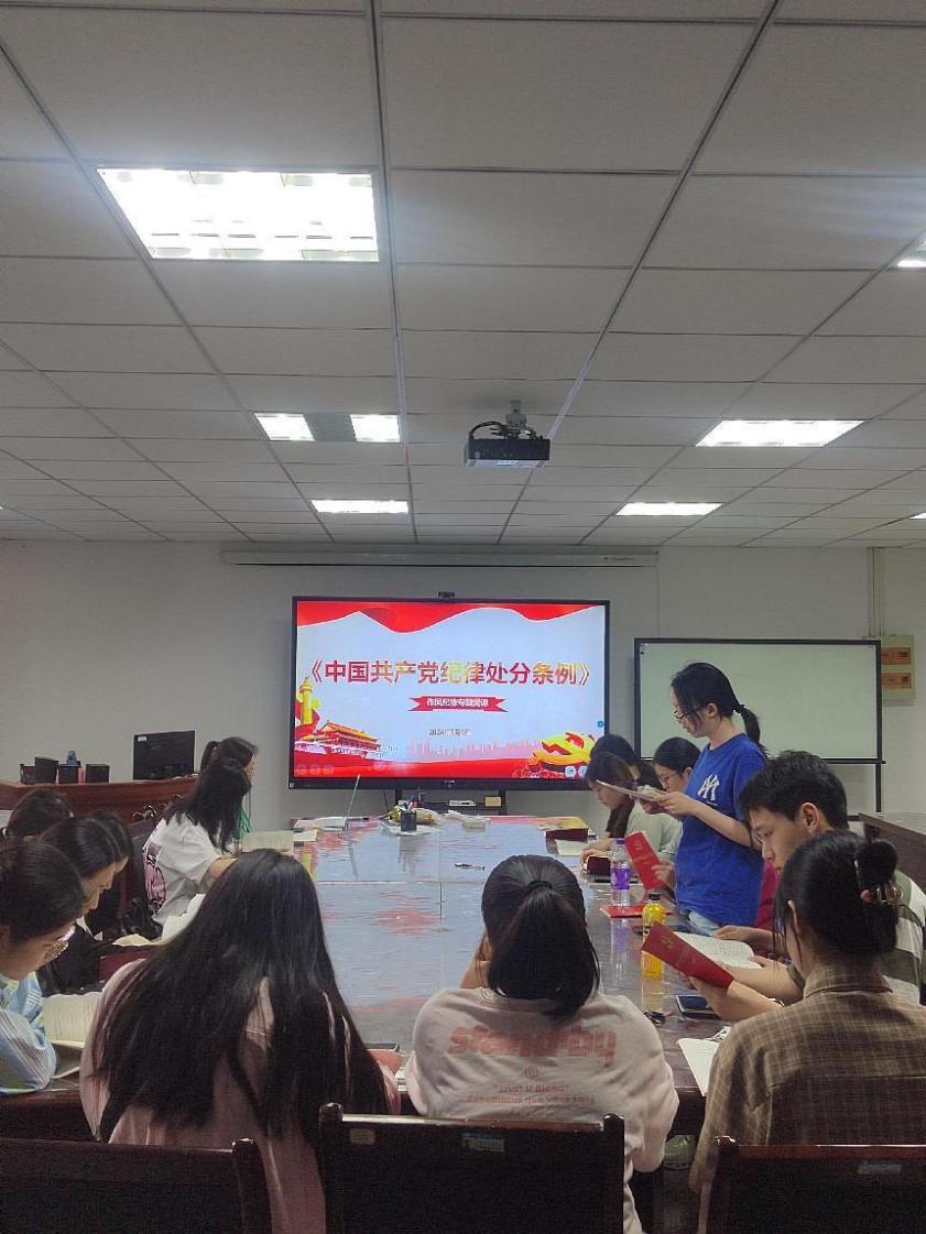 為進一步加強黨的紀律建設,提高全體黨員干部遵規守紀意識,5月9日晚18點,人工智能與大數據學院學生第四黨支部于37棟大會議室召開黨員大會,專題學習新修訂的《中國共產黨紀律處分條例》。本次活動由黨員李琪同志主持,以學習《條例》的總體要求和適用范圍、違紀與紀律處分、紀律處分運用規則為主要內容,全體黨員參加。