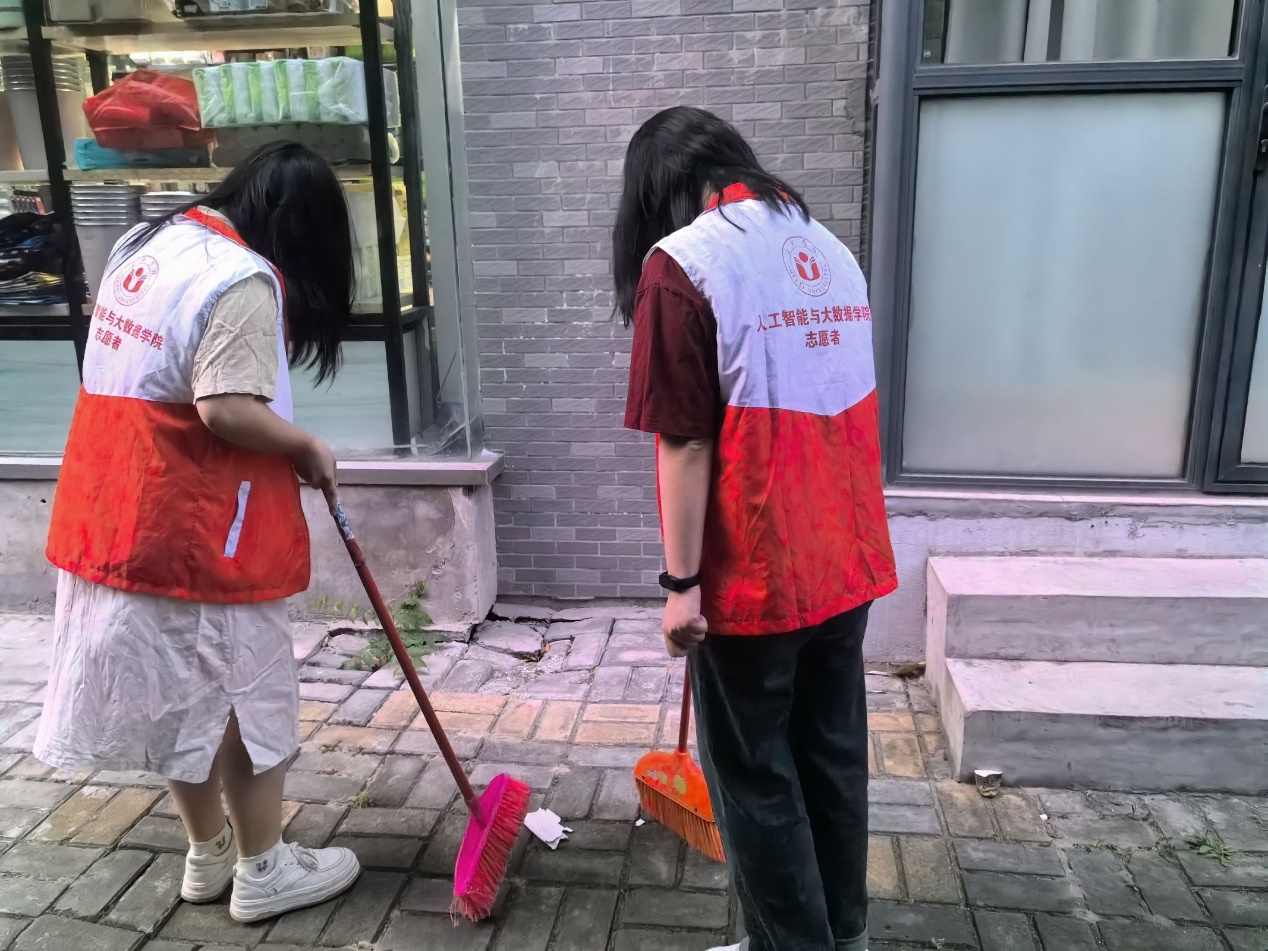 在桂苑和蘭苑這兩個宿舍區,志愿者們用掃帚等工具清理地面上的樹葉、紙張等垃圾,并整理未擺放整齊的車輛。即使是下雨天,雨后志愿者們也會帶上手套清理難以除去的垃圾。他們認真負責,完美詮釋了勞動精神,是校園里一道獨特靚麗的風景線。