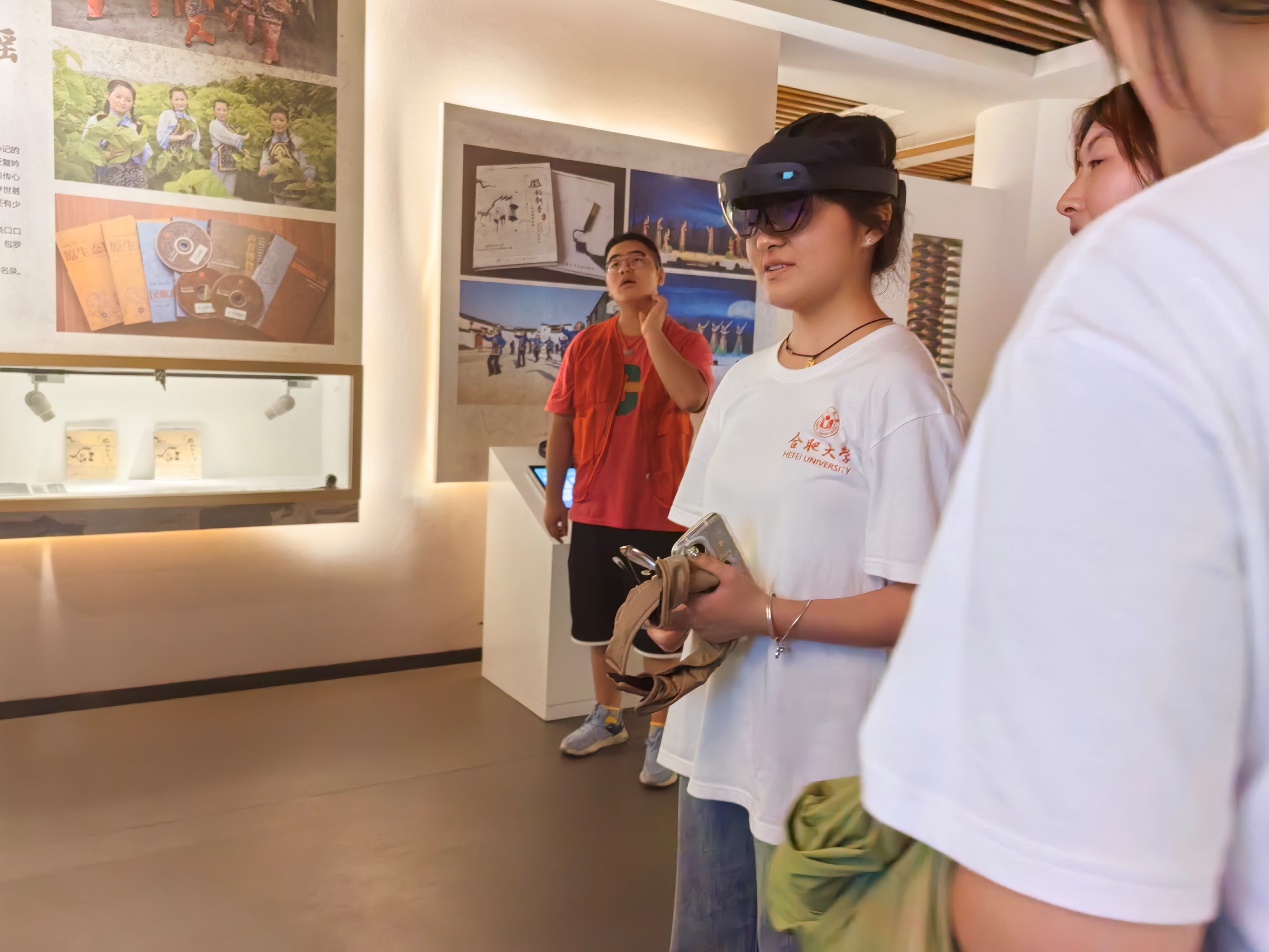 最讓志愿者們興奮的是VR眼鏡體驗環節。帶上VR眼鏡,他們仿佛穿越時空,置身于一個充滿徽州古建筑和傳統技藝的虛擬世界。在VR場景中,志愿者們親身參與了徽派建筑的搭建過程,體驗了徽墨制作的精細工藝,感受到了非遺文化的魅力和科技的力量。此次體驗讓志愿者們深刻認識到科技與傳統文化的結合,不僅為非遺文化的傳播提供了新的途徑,也為傳統文化的保護與傳承注入了新的活力。