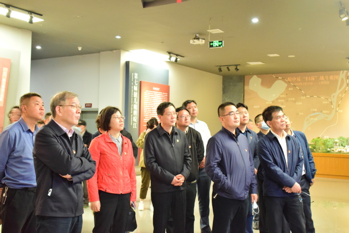 隨后,中心組成員依次參觀“皖江抗日起怒潮”“血泊中誕生的新四軍第七師”“第七師健兒馳騁皖江”“永遠的豐碑”等8個展廳,一件件珍貴的革命文物,一幅幅生動的歷史圖片……仿佛在訴說著那個戰火紛飛的年代,講述著那些真實感人的故事,生動再現了當年七師生活、工作、戰斗的場景,再現了那段血與火的崢嶸歲月。在每個展廳前,大家不時駐足,細細研讀、仔細聆聽,實地感受革命先烈的奮斗歷程,深切感悟共產黨人堅如磐石的崇高信仰。