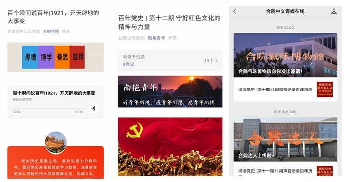 合肥學院豐富學習渠道和載體,實現“線上線下”同步推進,擴大黨史學習教育宣傳面。