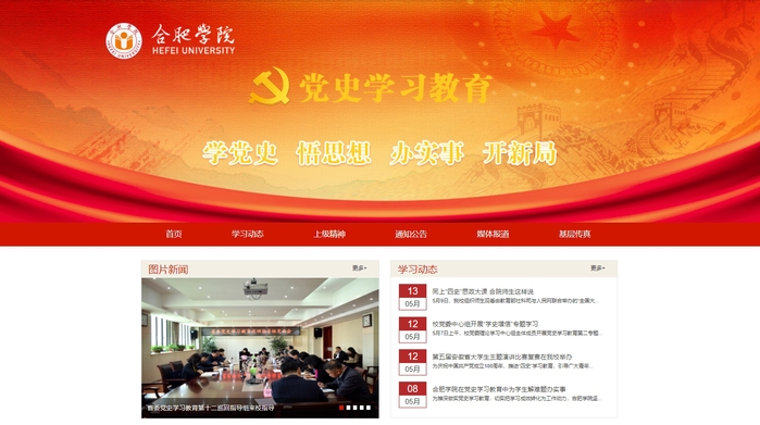 4月23日,合肥學院黨史學習教育專題網站正式上線,網站設置“學習動態”“上級精神”“通知公告”“媒體報道”“基層傳真” 5個子欄目,集部署、學習、通知、報道等功能于一體。