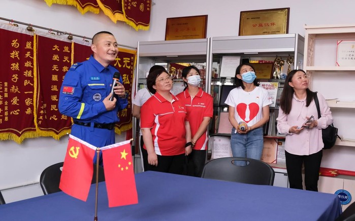 接著,三方領導及黨員代表們在會議室里共同收看了合肥市藍天救援隊2020年在安徽抗洪救災中的紀實短片,聆聽蘇琴講述救援隊員在重大突發事件面前的覺悟與選擇,平凡的語言描述著不平凡的壯舉,撞擊著每位聆聽者的心靈,激發出強烈的黨性共鳴。“我們一點也不偉大,我們就是普通人,但每個普通人也可以有很大的能量,也可以影響到其他人。”蘇琴說道。望著會議室中一整面掛滿了各界人士送來錦旗的紅色背景墻,不少同志紅了眼眶,大家都被藍天救援隊的志愿服務精神和黨員奉獻精神所打動。