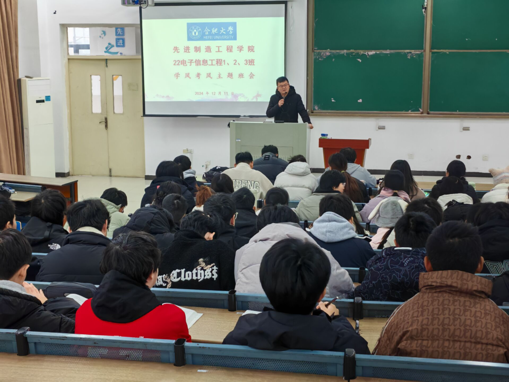 為進一步強化班級學(xué)風(fēng)建設(shè),嚴(yán)肅考風(fēng)考紀(jì),著力營造積極進取、勤奮好學(xué)的學(xué)習(xí)氛圍,2024年12月11日上午,先進制造工程學(xué)院在38-3JT教室召開一學(xué)風(fēng)建設(shè)與考風(fēng)考紀(jì)主題班會,22級電子信息工程專業(yè)全體同學(xué)參會。