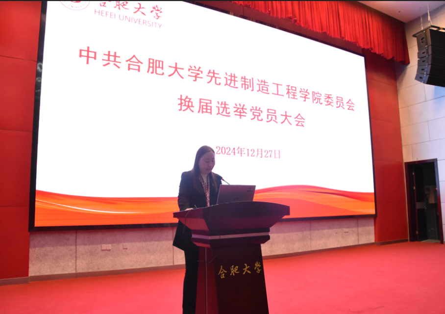 為進(jìn)一步加強(qiáng)黨的基層組織建設(shè),提升黨建工作質(zhì)量,經(jīng)學(xué)校黨委批準(zhǔn),2024年12月27日,中共合肥大學(xué)先進(jìn)制造工程學(xué)院委員會換屆選舉黨員大會在學(xué)術(shù)報告廳A廳隆重召開,大會選舉新一屆黨委委員和紀(jì)委委員。先進(jìn)制造工程學(xué)院全體師生黨員參加會議。