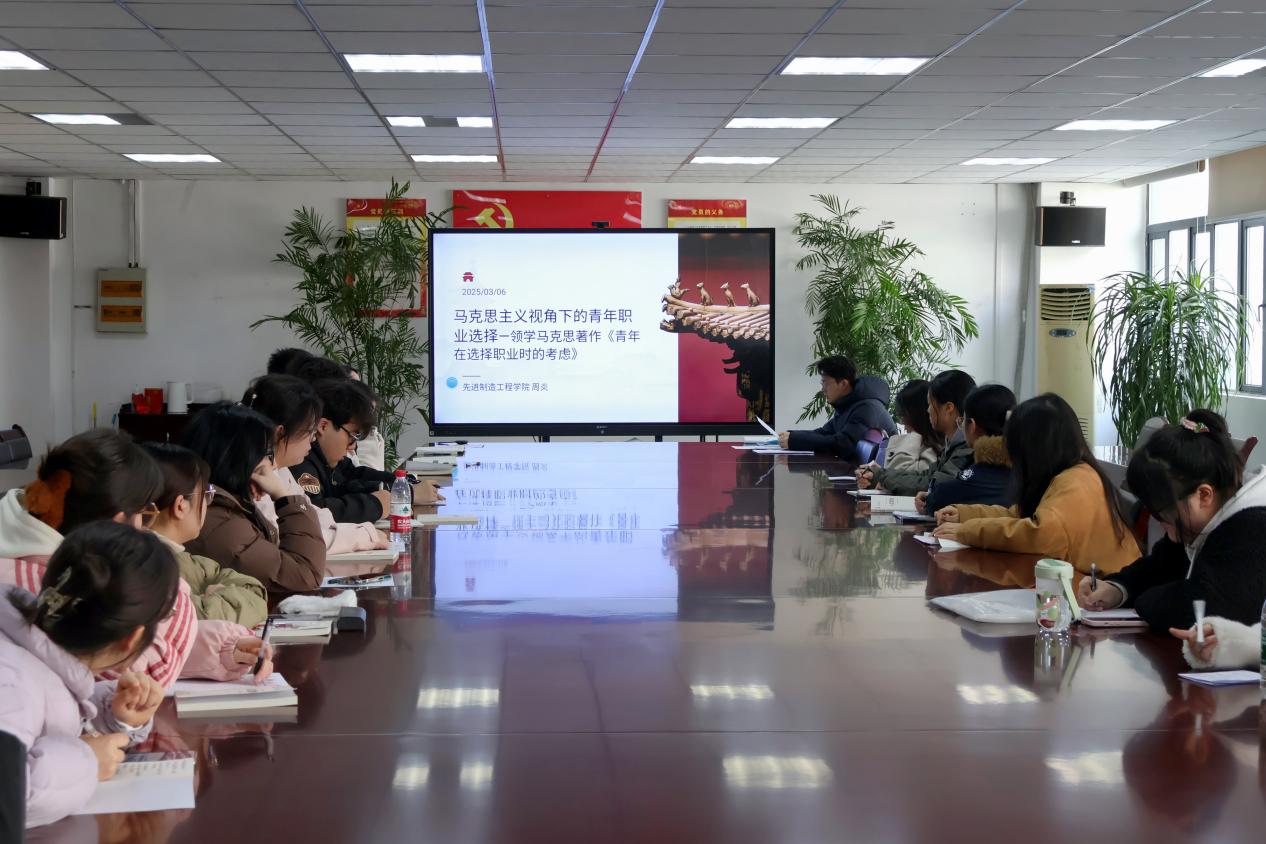 3月6日中午12:30,一場以“畢業生如何在就業過程中發揮先鋒模范作用”為主題的研討會在 38-305 會議室熱烈舉行。活動由周炎老師主持,發展對象培訓班學員踴躍參與。會議開始,周炎老師帶領學員們共同學習了馬克思的經典著作《青年在選擇職業時的考慮》,并緊密結合當前的就業形勢,深入剖析了職業選擇背后的意義與責任。隨后,學員們圍繞主題展開了熱烈的研討交流,紛紛分享了自己對于在就業中踐行先鋒模范作用的見解。大家一致認為,要發揮先鋒模范作用,畢業生需樹立正確的就業觀,將個人的發展與國家的需求緊密結合,勇于擔當社會責任,積極服務社會。此次研討會為畢業生黨員發展對象提供了寶貴的思想指引,進一步堅定了他們的理想信念和使命擔當。