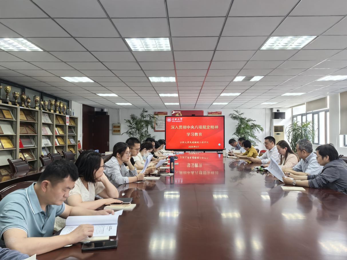為深入貫徹落實(shí)中央八項(xiàng)規(guī)定精神,強(qiáng)化學(xué)習(xí)實(shí)效,先進(jìn)制造工程學(xué)院于5月13日在38-305會(huì)議室開展深入貫徹中央八項(xiàng)規(guī)定精神學(xué)習(xí)教育讀書班集中學(xué)習(xí)研討。學(xué)院黨委班子成員、各黨支部書記、科級(jí)干部參會(huì),會(huì)議由學(xué)院黨委書記杜娟主持。