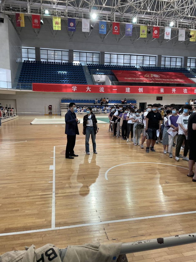 5月28日早上,我院黨委副書記李秀娟以及全體輔導員均到達接種現場,體育館接種點外早早就排起了長長的隊伍,同學們戴好口罩,都踴躍地加入到了主動接種的大部隊當中。大家對參加疫苗接種都很期待,都表示這是作為一名中國人享受的國家福利,也是作為一名青年大學生為社會應盡的一份責任。各部門教職工們也在隊伍中來回穿梭,告訴大家接種流程。