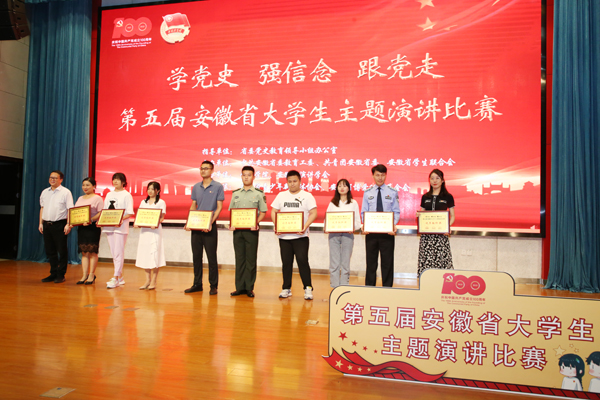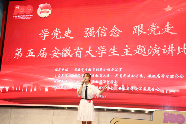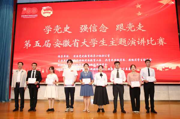 6月17日,“學黨史 強信念 跟黨走”第五屆安徽省大學生主題演講比賽決賽在合肥學院舉行,省委宣傳部部務會成員、省文明辦主任楊明世,團省委副書記胡靖,合肥學院黨委副書記劉建中,以及黨史學習教育省委第十三巡回指導組、團省委、省委教育工委、合肥學院相關部門負責同志,合肥學院師生代表共計160余人現場觀摩。