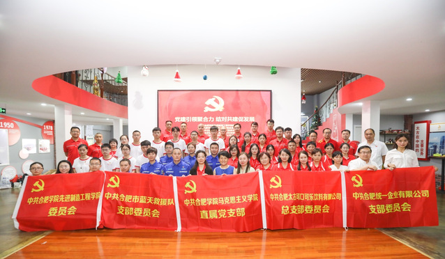 今年是中國共產黨成立一百周年,也是“十四五”開局之年和全面建設社會主義現代化國家新征程開啟之年。為進一步深入學習黨史,歌頌黨的光輝歷程,激勵師生黨員及企業員工堅定理想信念,凝聚磅礴力量。6月24日下午,合肥學院先進制造工程學院黨委、馬克思主義學院直屬黨支部與太古可口可樂公司總支委、合肥市藍天救援隊支委、統一企業有限公司支委聯合開展了“黨建引領聚合力,結對共建促發展”的主題黨日活動。合肥學院先進制造工程學院黨委書記杜娟、馬克思主義學院院長胡艷萍,太古可口可樂公司黨總支書記夏敏、人力資源總監賈真珍,藍天救援隊隊長蘇琴、支部書記劉曉東,統一企業有限公司工會主席闞冬芹、支部書記丁偉偉及五家單位的黨員代表共50余人參加了本次活動。
