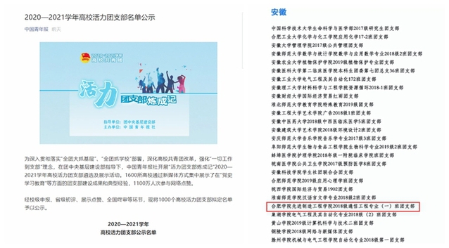 為深入貫徹落實“全團大抓基層”、“全團抓學校”部署,深化高校共青團改革,強化“一切工作到支部”理念,4月,團中央啟動了“活力團支部煉成記”2020—2021學年高校活力團支部遴選及展示活動,我校積極推薦優秀團支部申報評選。日前,2020-2021年度全國高校“活力團支部”名單公布,我校先進制造工程學院2018級通信工程1班團支部入選。