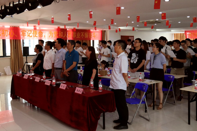 最后,在宋超書記的領唱下,全體起立齊唱《共產國際歌》,激昂的歌聲充斥著整個演出廳。