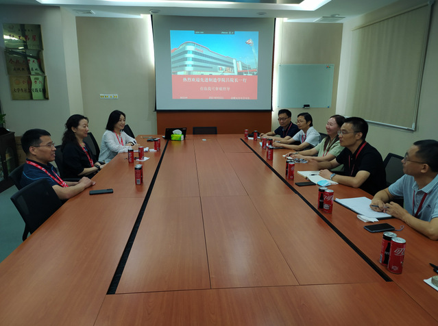 在企業洽談室,公司制造總監胡建廠、人力資源總監賈真珍、供應鏈人力資源鐘茗與我院領導和老師進行了交流洽談。