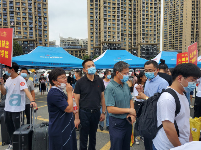 迎新活動正在如火如荼地開展的時候,合肥學(xué)院黨委書記王其東和校長吳春梅親臨現(xiàn)場視察迎新工作并慰問志愿者,提醒志愿者在幫助新生順利入學(xué)的同時也要戴好口罩保護(hù)自身安全;表示要在新生入學(xué)的第一天為他們留下一個好的印象,樹立一個良好的開端;稱贊志愿者們代代相傳的可貴精神,通過實(shí)際行動幫助新生快速融入大學(xué)生活。