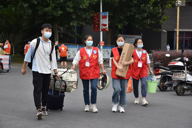 為配合國家防疫工作的開展,本次新生報道活動不允許家長陪同進(jìn)入,志愿者排隊在門口靜候新生到來。新生到來之后,志愿者引導(dǎo)其前往相應(yīng)的專業(yè)窗口,掃碼登記后向班助提交所需材料并領(lǐng)取校園卡。行李較多的新生會有志愿者幫助搬運(yùn)至寢室,在引導(dǎo)新生前往寢室的途中,志愿者也會介紹沿途校園的建筑,回答新生的疑問,同時提醒新生提防最近頻繁出沒的各種詐騙以及盜取個人信息的不法分子。