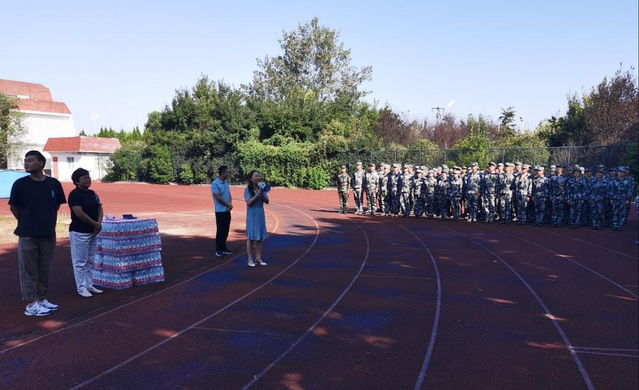 抵達(dá)田徑場(chǎng)后,全體新生整齊列隊(duì),歡迎學(xué)院領(lǐng)導(dǎo)老師們的到來。杜娟親切問候全體新生,并向大家送上中秋祝福,并對(duì)辛苦工作的教官們表示感謝,對(duì)軍訓(xùn)期間新生同學(xué)們的優(yōu)異表現(xiàn)表示欣慰。杜書記講到,今天是中秋佳節(jié),學(xué)院老師們一起來看望大家,希望大家能把合肥學(xué)院當(dāng)成自己的家,把身邊的老師、同學(xué)們當(dāng)成自己的親人一樣,相處愉快,收獲成長。同時(shí),她說通過軍訓(xùn),同學(xué)們的整體素質(zhì)、紀(jì)律觀念和軍人作風(fēng)都有了很大提高,這些當(dāng)歸功于軍訓(xùn)教官們的辛勤教導(dǎo)與學(xué)生們的積極配合。希望大家在接下來的軍訓(xùn)中繼續(xù)嚴(yán)格要求自己,發(fā)揚(yáng)不怕苦不怕累的軍人精神,以全新的面貌迎接大學(xué)新生活。