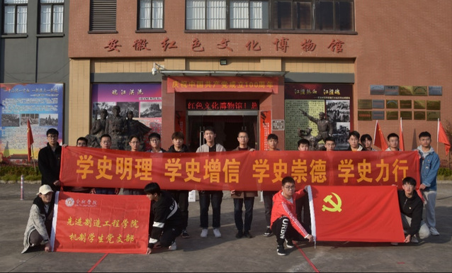 為慶祝中國共產黨成立100周年,2021年11月12日下午,合肥學院先進制造工程學院機制學生黨支部組織20余名師生黨員,赴安徽紅色文化博物館參觀學習,重溫黨的光輝歷程,牢記初心使命。