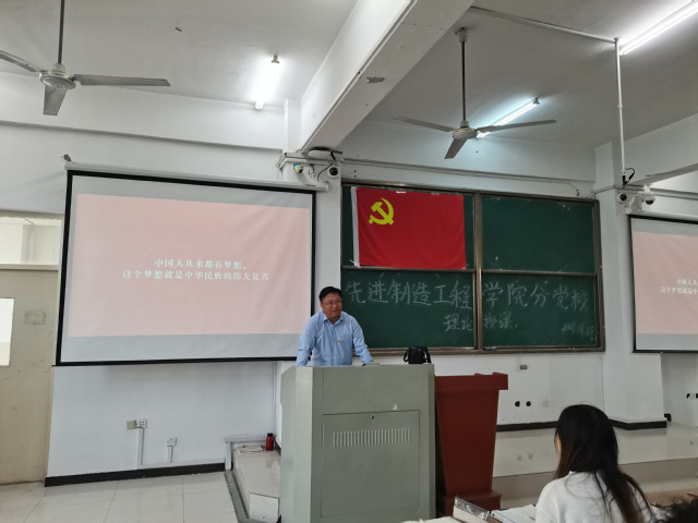 2021年11月18日中午12:40分,先進制造工程學院分黨校第四期入黨積極分子培訓班第八次理論授課于38棟3階梯教室舉行,本次課程由校黨委委員、宣傳統戰部賈峰部長進行授課,全體入黨積極分子參加了本次授課。