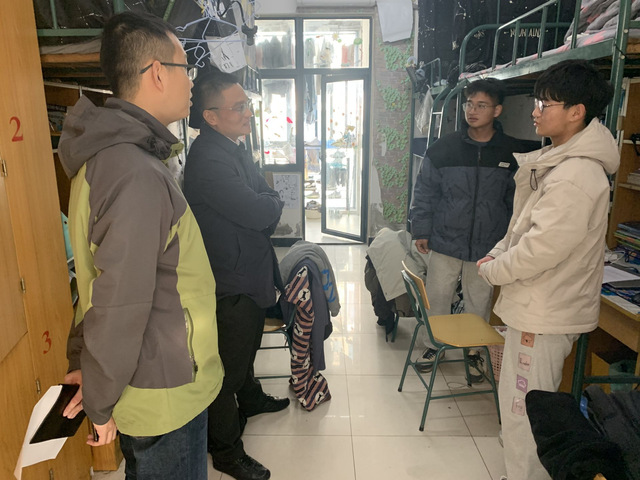 在走訪宿舍期間,學院領導們對學生宿舍安全、衛生、設施、文化建設等方面逐一進行了檢查,叮囑在宿舍的同學提升安全意識,養成良好的學習、衛生和作息習慣,建設積極向上的宿舍文化。同時詳細了解了同學們的意見和建議,做到“現場辦公”,當場問題當場解決,不能解決的問題也進行準確記錄,在之后的工作中也會及時進行點對點的落實到位,力求給大家創建一個安全舒適、和諧愉悅的校園生活環境和學習氛圍。